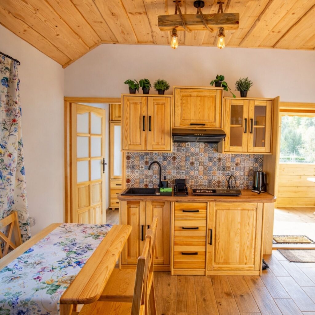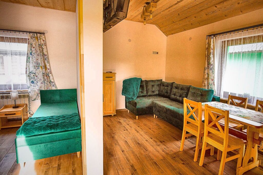 W pełni wyposażone wnętrza gwarantują wygodę niezależnie od pory roku. Funkcjonalna przestrzeń sprawdzi się zarówno dla rodzin, jak i mniejszych grup.